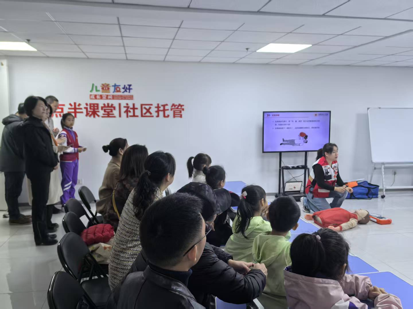 成长空间精心规划了符合不同年龄段儿童发展的活动场景,启用当天各项互动同步开展,氛围热烈而有序。数十名3岁以下幼儿在家长陪伴下参与奥尔夫音乐亲子早教,在温馨愉悦的氛围中开启社会认知启蒙;面向十岁以上儿童开展的AED使用培训,通过专业讲师生动讲解和实操模拟,让孩子们掌握基础急救技能,不仅提升了安全意识与互助能力,更让生命教育的种子在童年时期深深扎根;同时举办的“如花在野·有序生长——构建家庭的秩序与活力”家庭家风家教讲堂,则邀请专家与家长围绕亲子沟通、学习引导等话题展开交流,并结合传统文化体验,营造出家校共育、和谐成长的良好氛围。
