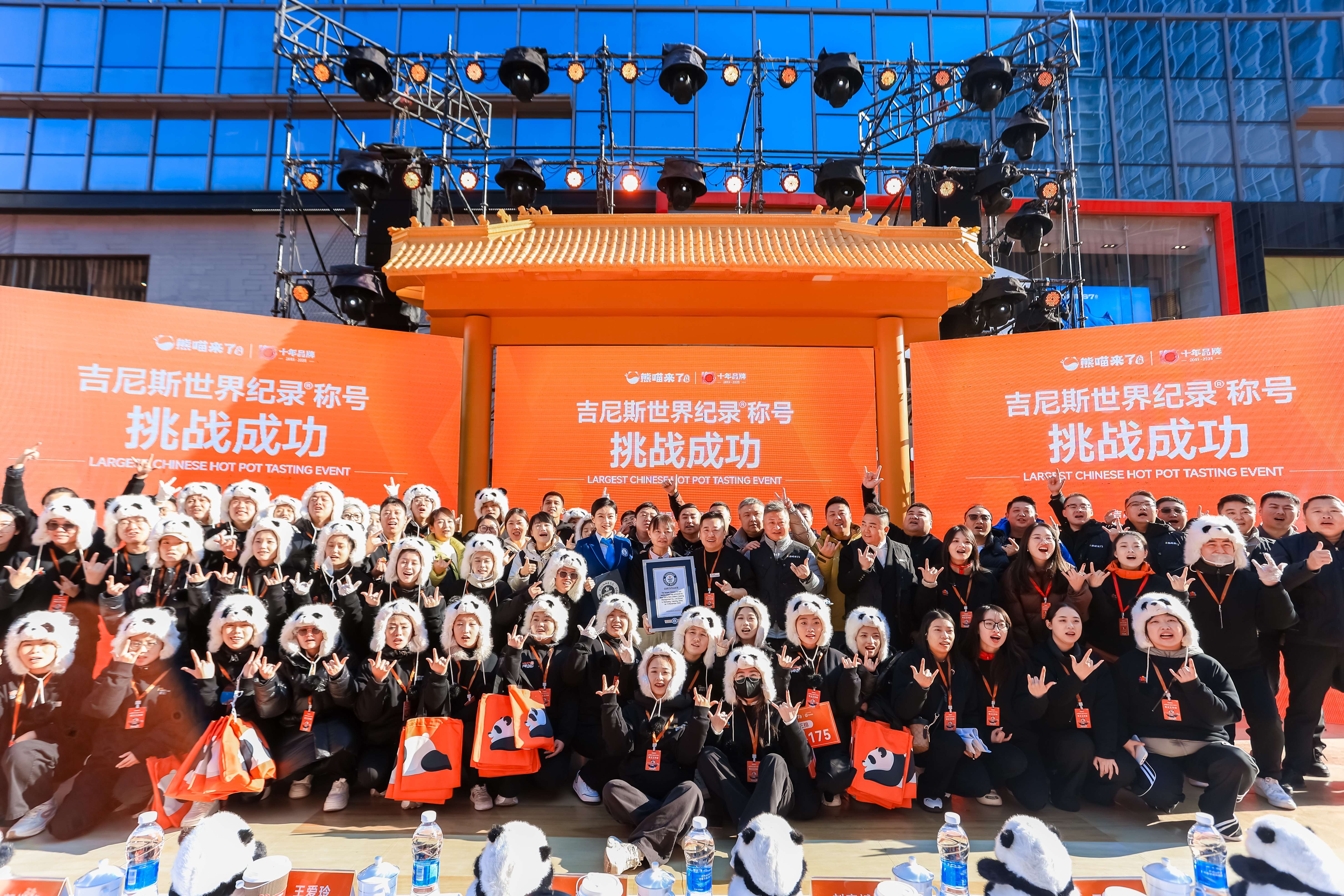 11月14日,沈阳太原街万达广场门前热闹非凡,国潮乐队奏响序曲,传统舞狮登台助兴,一项新的吉尼斯世界纪录在此诞生。由沈阳本土火锅品牌熊喵来了发起的“最大规模的中国火锅品鉴”挑战圆满成功,近300名沈阳市民与来沈游客共同见证这一高光时刻,活动得到了沈阳市和和平区政府的大力支持。
