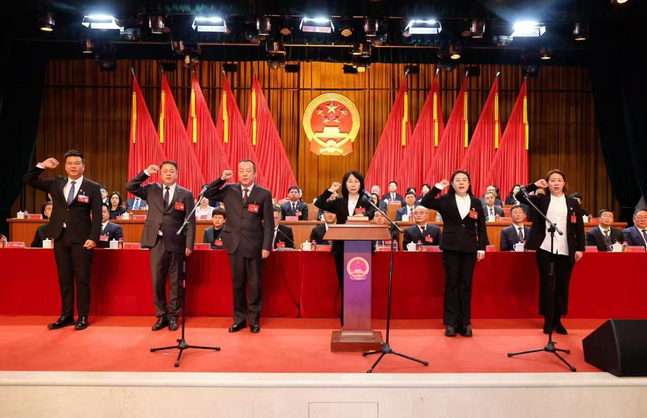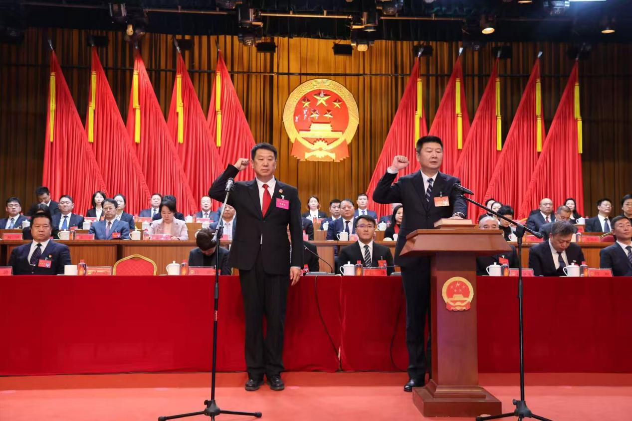 新当选人员与全体代表见面并进行宪法宣誓。