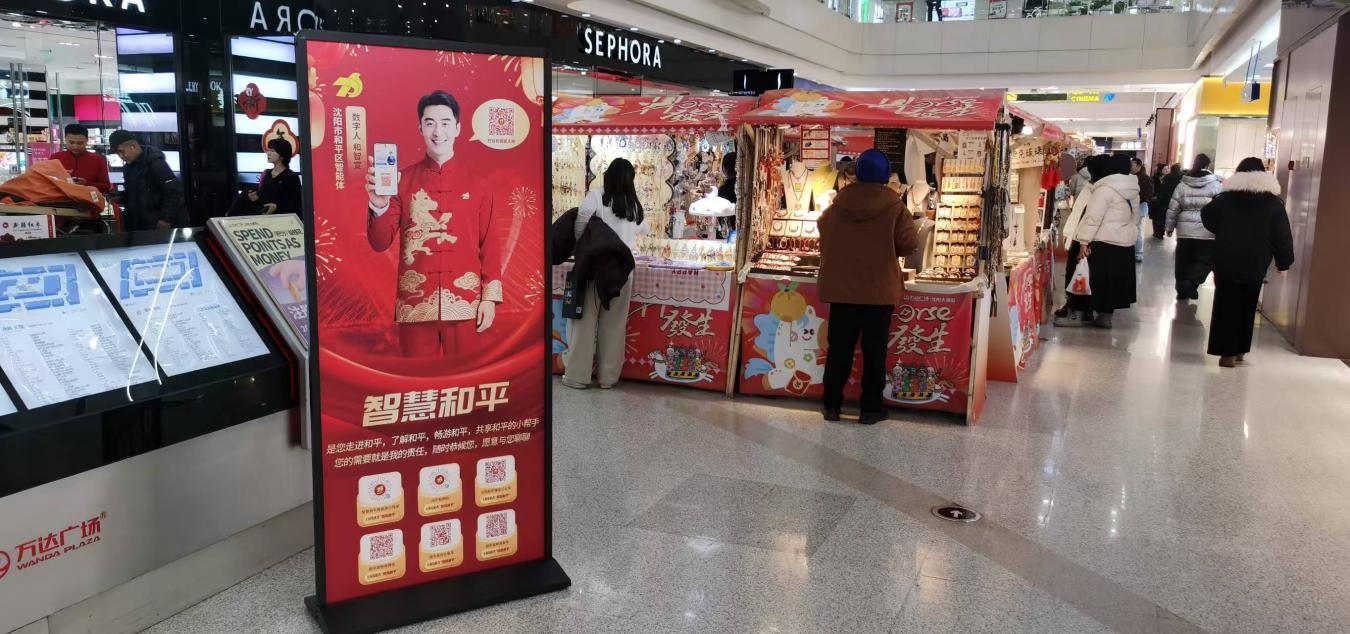 记者在太原街商场入口、老北市各出入口、西塔特色街区看到,各处均已设置“和智宣”宣传展架与宣传大屏,醒目亮眼、氛围浓厚,以直观形式迎接市民与外地游客,让数字人“和智宣”的AI智能服务陪伴群众欢度新春。