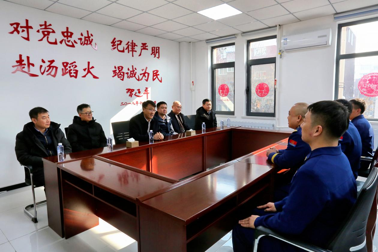 在新春佳节来临之际,2月13日上午,区委书记张德,区委副书记、区长彭光磊,区人大常委会主任唐纲,区政协主席赵中军代表区四套班子,先后来到交警和平大队、老道口环卫工人休息室、新华专职消防队、长白派出所、沈阳祥运热力供暖有限公司,走访慰问坚守一线的干部职工,向大家致以新春问候和美好祝愿。