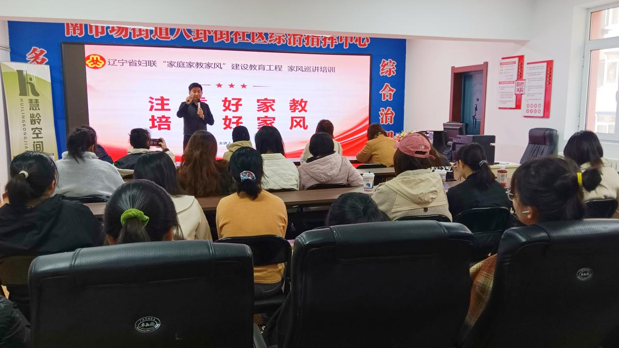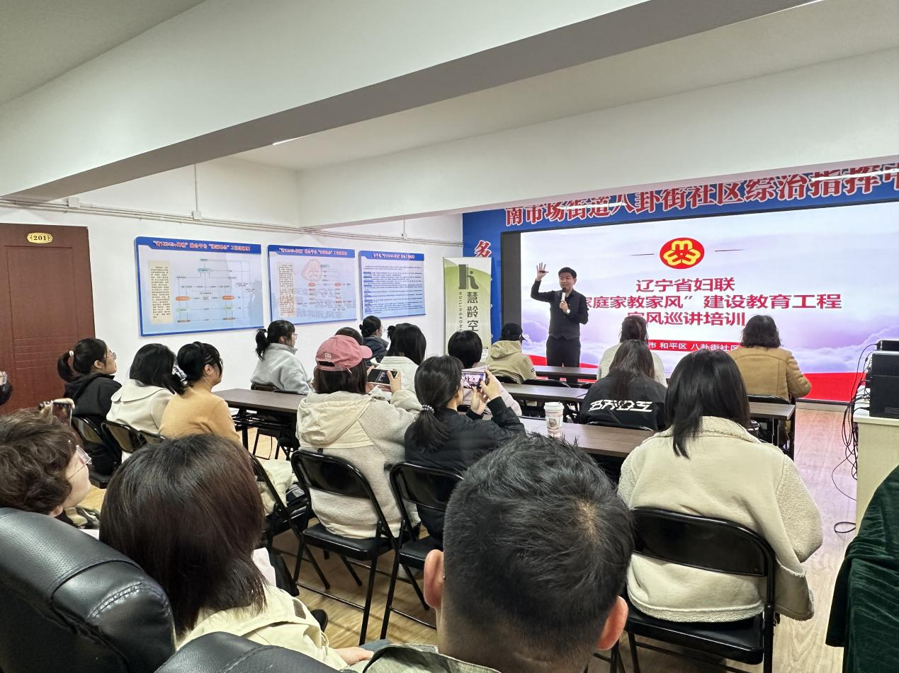 为深入推进家庭家教家风建设,传承中华优秀传统家庭美德,助力社区和谐发展与未成年人健康成长,11月15日,辽宁省妇联“家庭家教家风”建设教育工程家风巡讲培训走进和平区八卦街社区,开展以“注重好家教,培育好家风”为主题的公益讲座,吸引了全区50余名社区工作者及居民代表踊跃参与,现场学习氛围浓厚。