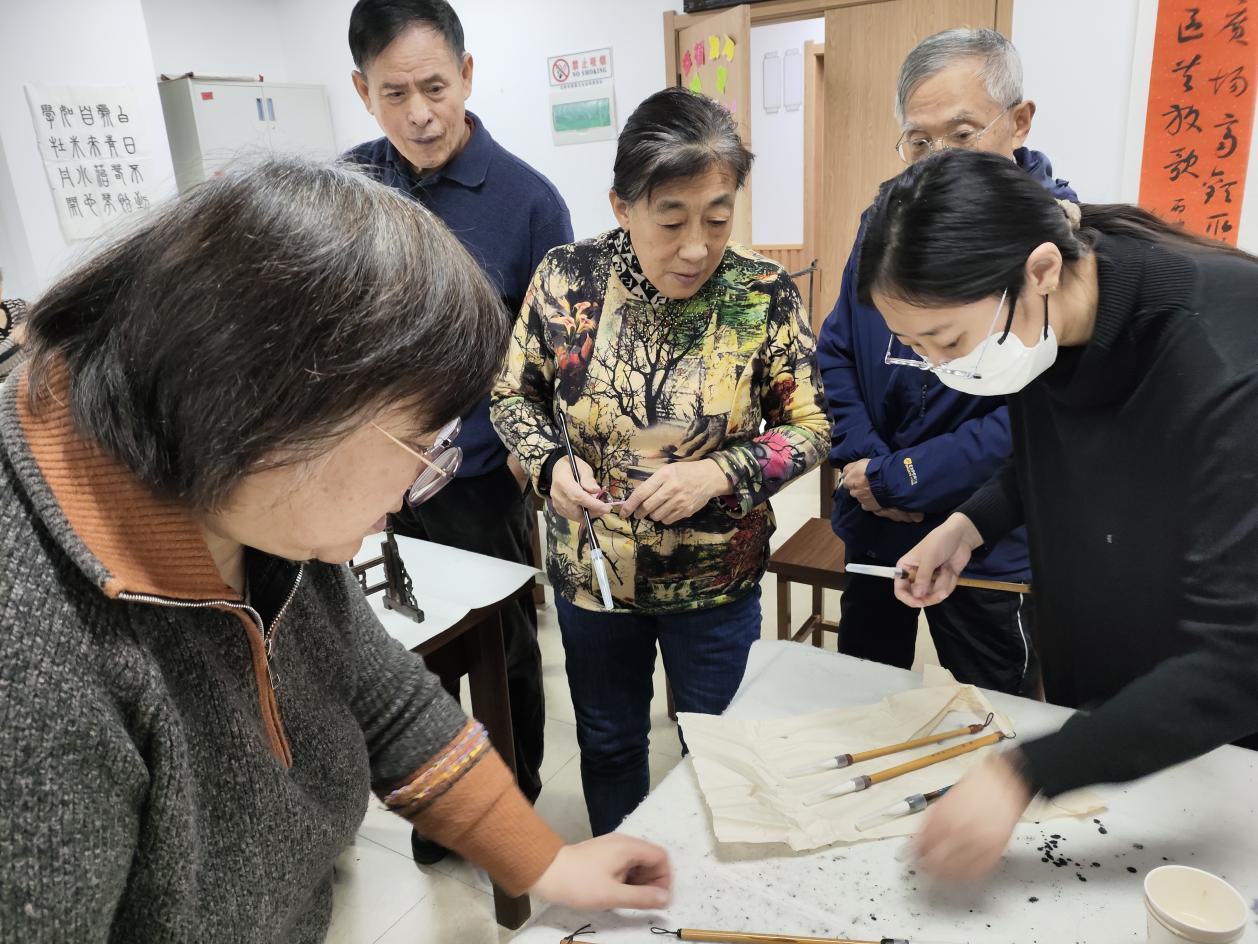 考虑到老年学员的学习特点,书法老师特意放慢节奏,从最基础的握笔姿势教起,手把手纠正大家的指法、坐姿。“阿姨,您手腕再放松些,撇画要刚柔并济”“大伯,这个‘福’字的结构再调整下,左右对称更匀称”,老师的话语温和又耐心,走到每位学员身边逐字指导,还不忘用通俗的比喻讲解书写技巧,让原本生疏的笔画变得生动易懂。