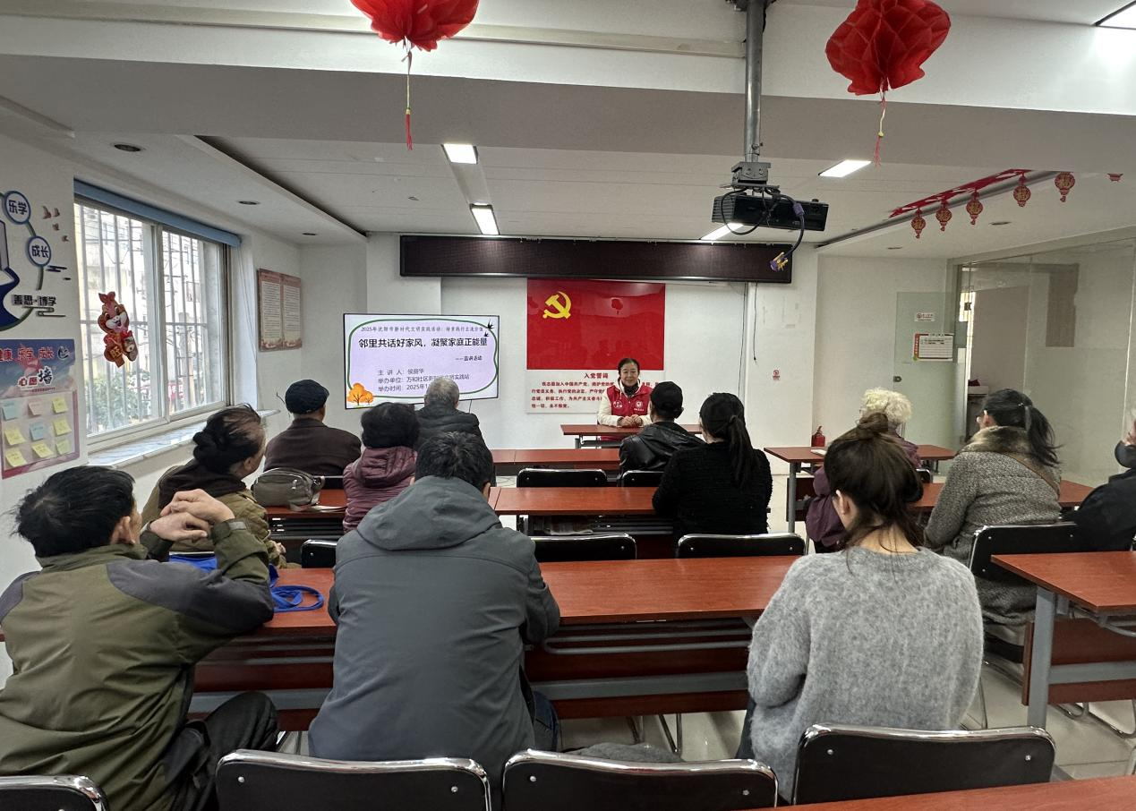 活动中,社区邀请的退休党员侯阿姨围绕“家风的内涵与时代价值”展开宣讲,从“孔融让梨”的传统美德,到身边邻里“孝老爱亲、勤俭持家”的鲜活故事,优良家风始终是传承文明的重要载体,引导居民认识到家风是社会风气的重要组成部分。作为党员,我们要以身作则,将诚信友善、尊老爱幼的理念融入日常,用言传身教为子女树立榜样;作为社区一份子,让我们互学互鉴,以家风促民风,让文明之花在社区处处绽放。