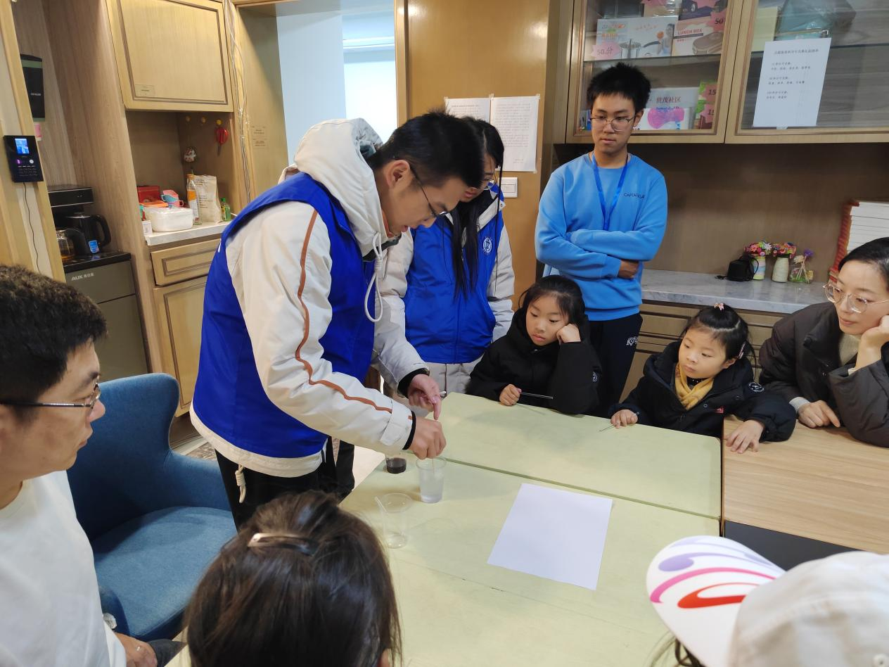 近日,和平区南湖街道世茂社区新时代文明实践站活动室内充满了孩子们的惊叹与欢笑。为丰富中小学生课余生活,激发科学探索兴趣,营造寓教于乐的社区文化氛围,世茂社区携手东北大学理学院举办了第二期“奇妙化学在身边”——探索生活中的科学社区科普志愿活动,6组亲子家庭踊跃参与,共同体验了一场别开生面的化学探索之旅。