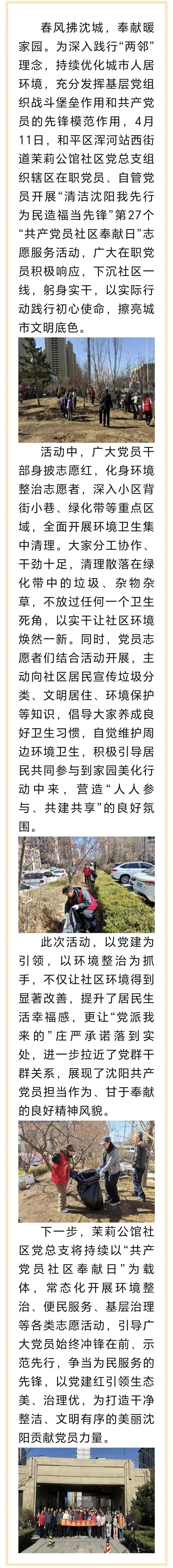 浑河站西街道开展“清洁沈阳我先行为民造福当先锋”第27个“共产党员社区奉献日”活动