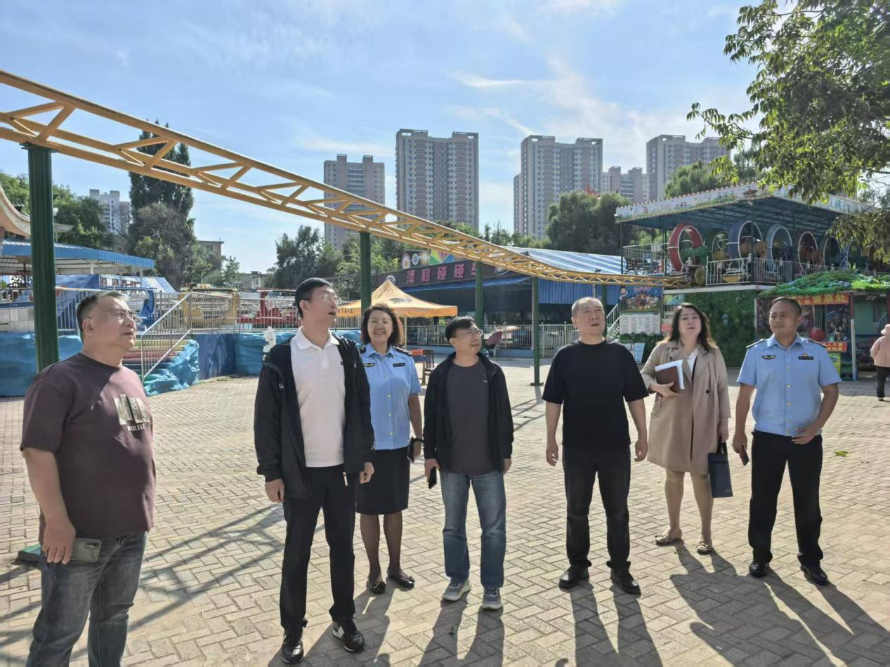 在特种设备安全领域,检查组对南湖公园的大型游乐设施、相关场所的电梯和压力容器等设备进行了重点检查,详细了解设备维护保养和安全管理制度落实情况。